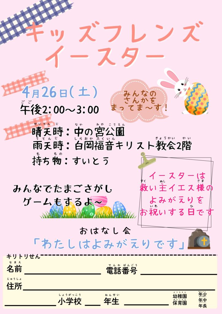 4月のキッズフレンズのお知らせ