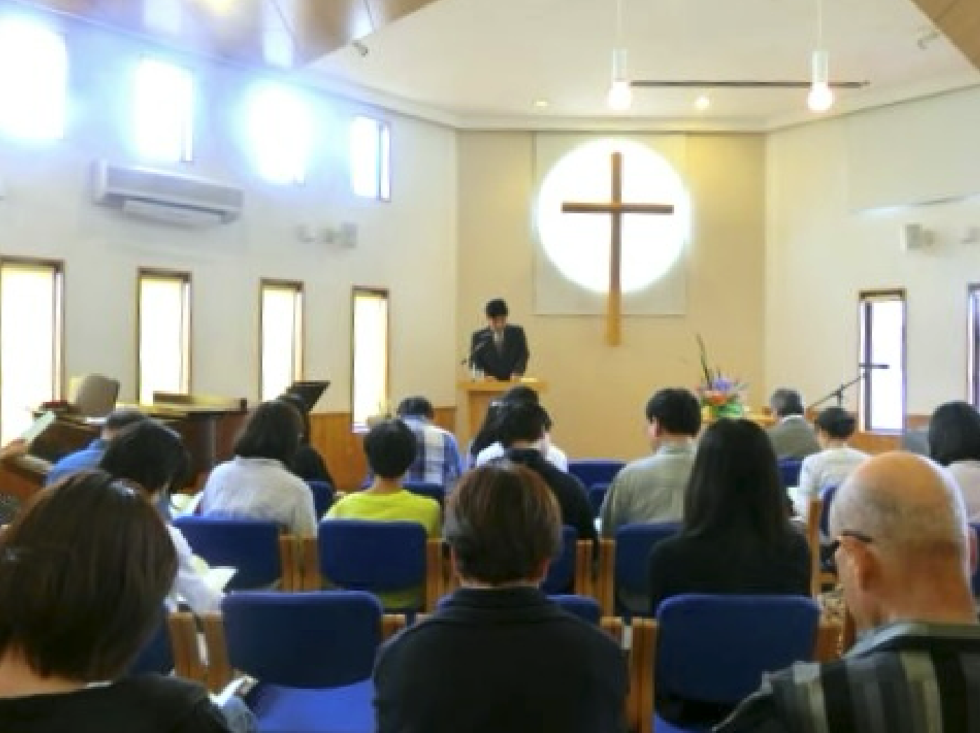 大人と子どもが一緒に集い、賛美歌、お祈り、聖書のお話を聞き、神様を礼拝します。
